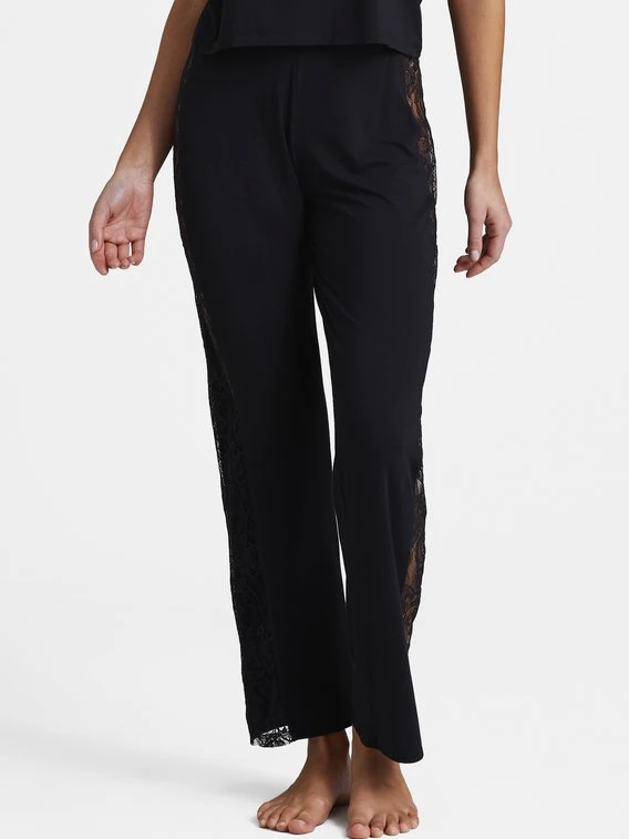 Das Pariser Label AUBADE bringt mit der Serie “Lazy Days” eine edle Loungewear-Linie auf den Markt, die dank der Kombination aus seidigem Modal und floraler Spitze für die perfekte Balance aus Komfort und Sexyness sorgt. Die lange Hose der Kollektion schmeichelt der Silhouette dank ihres geraden, weiten Schnitts und des fließenden Materialmixes aus Micromodal und Seide. Die seitlichen Einsätze aus floraler, transparenter Spitze setzen dabei verführerische Akzente und machen die Loungehose zu einem eleganten, sexy Begleiter.