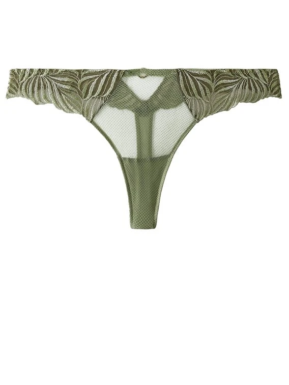 Der String aus der Serie “Paradis Exotique” von AUBADE kombiniert außergewöhnliche Stickerei, die mit goldenem Lurex-Garn durchzogen ist mit einem vergoldeten Zamak-Schmuckelement um einen sinnlichen, eleganten Look zu kreieren. Die flachen Abschlüsse des Höschens schmiegen sich perfekt an die Konturen an und zeichnen sich nicht durch die Oberbekleidung ab.