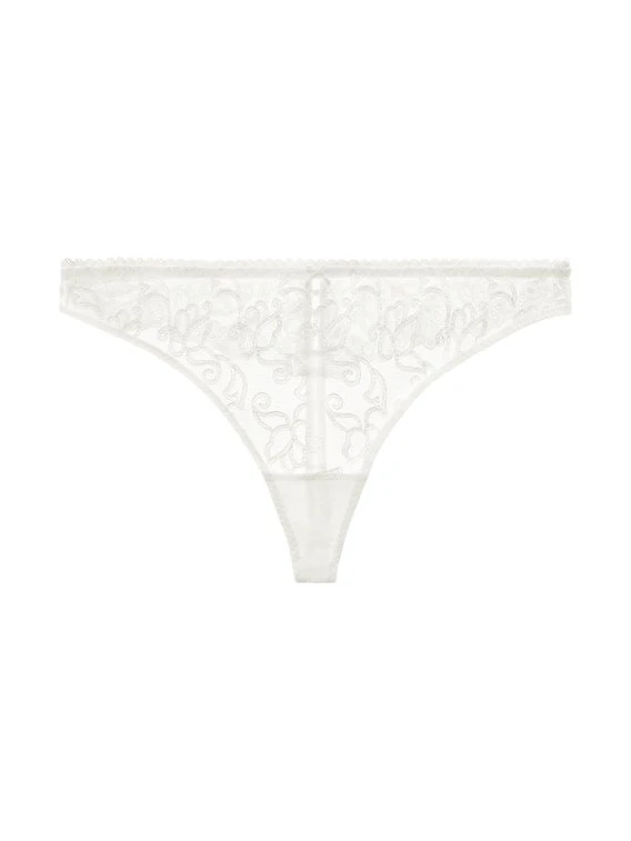 Der String der Hochzeitsserie „Pour Toujours“ von AUBADE setzt mit floraler Cornerly-Stickerei und filigranen Details romantische Akzente. Das Höschen besteht aus transparenter, verzierter Loch-Stickerei, die sich an die Haut schmiegt und einen sexy Look bietet. Highlight des verführerischen Strings ist die durchbrochene Guipure-Borte auf der Rückseite, die an die Knöpfe eines Brautkleides erinnert.
