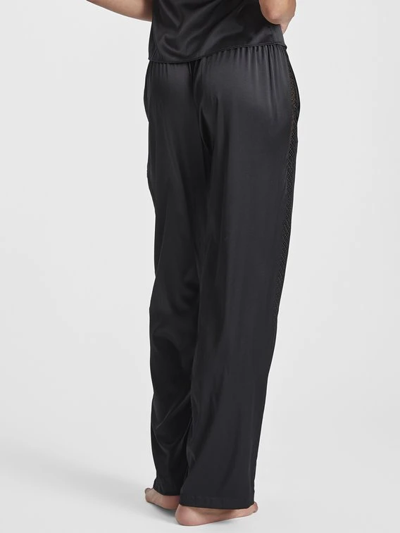 AUBADE erweitert die Nightwear-Linie und präsentiert mit der “Silk Desire” Serie eine anmutige, elegante und feminine Nachtwäsche-Kollektion aus edler Stretch-Seide. Die lange Hose überzeugt mit einem gerade geschnittenen Bein, das die Figur umspielt. Grafische Guipure-Bänder mit Lochstickerei an den Seiten verleiht der Seiden-Hose einen sinnlichen Look.