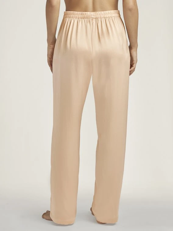Die edle Nightwear-Linie „Toi mon Amour“ von AUBADE verwöhnt die Haut mit Zartheit und Sinnlichkeit. Die neue Loungewear-Ergänzung in Form dieser edlen Hose wurde aus feinster Seide gefertigt und umspielt den Körper wie eine hauchzarte Berührung. Die Kombination aus dem Spaghetti-Top und dem Kimono der Serie sorgt für einen mondänen Look für die Zeit daheim.
