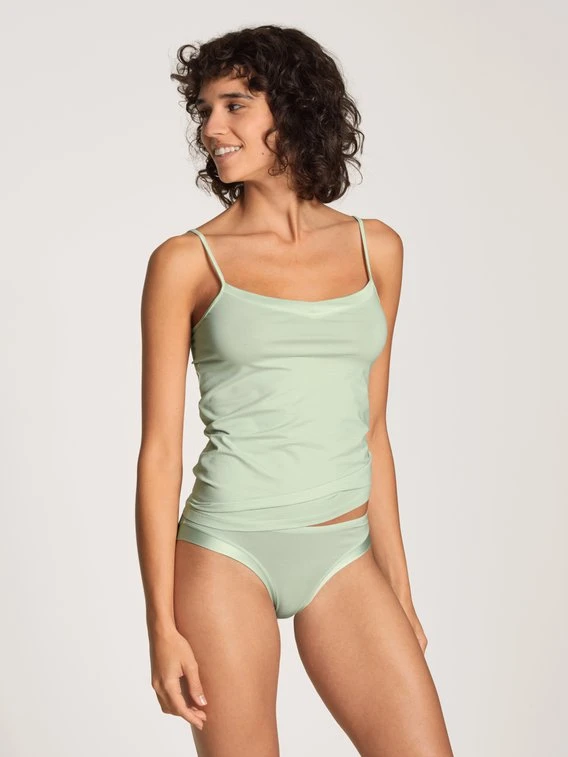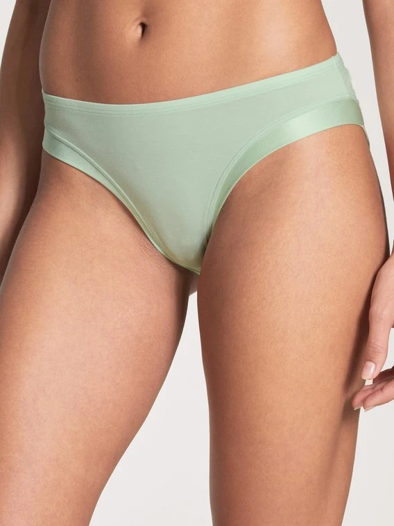 Slip aus der Serie CATE der Marke CALIDA aus besonders hochwertiger Supima®-Baumwolle. Die hohen Beinausschnitte schließen mit zart glänzenden Satinblenden ab. Ein besonders edler Look für Darunter!