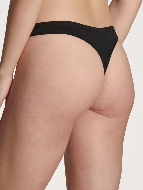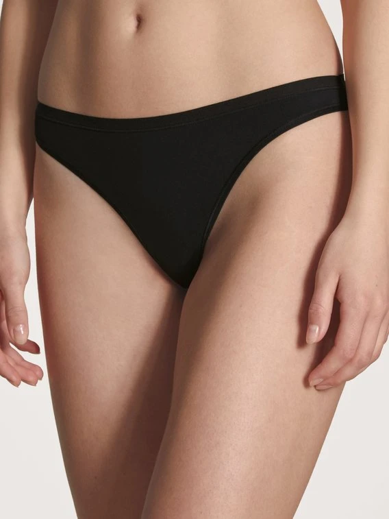 Die Basic-Serie ECO SENSE von CALIDA hält, was sie verspricht. Eine unheimlich softe, aber dennoch strapazierfähige Materialmischung wird mit einer cleanen und modernen Schnittform kombiniert und zu diesem atmungsaktiven String verarbeitet. Vorder- und Rückseite des String-Tangas werden seitlich mittels zweier schmaler, weicher und elastischer Bändchen gehalten. Tipp: Ideal für Urlaub und Reisen, da extrem schnell trocknend.