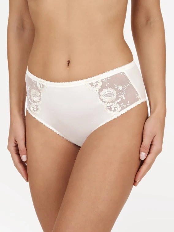 Feminin schön ist der Taillenslip aus der “Provence”-Linie von CONTURELLE. Die seitlichen, transparenten Einsätze sind mit einer hochwertigen Stickerei besetzt. Für Tragekomfort sorgt die taillenhohe Schnittform sowie die Wäschelitze an den Abschlüssen