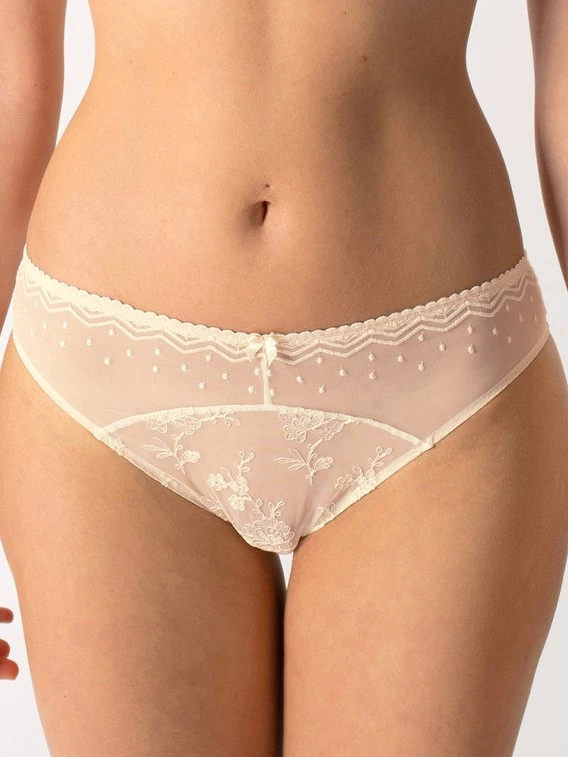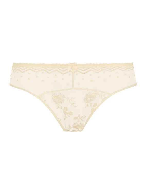 Mit einem harmonischen Design-Mix überzeugt der Slip aus der Serie „Ellen“ von EMPREINTE. Das Höschen ist sowohl mit französischer Spitze als auch mit zarten Stickereien versehen. Retro-Details in gepunkteter und grafischer Form runden den edlen Look ab. Die leichte Mikrofaser sorgt dafür, dass sich der Slip angenehm auf die Haut legt und ein komfortables Tragegefühl garantiert.