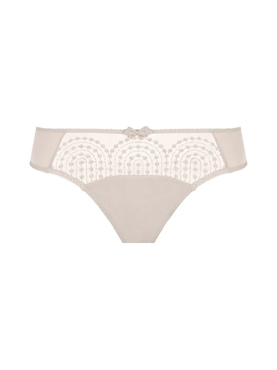 Klassischer Rio-Slip aus der Serie „Norah“ von EMPREINTE. Der Slip ist an der Vorderseite mit Konfetti-Punkten und Guipure-Spitze verziert. Durch den hohen Beinausschnitt und das elastische Material liegt der Slip leicht auf der Haut und unterstreicht Ihre weibliche Silhouette.