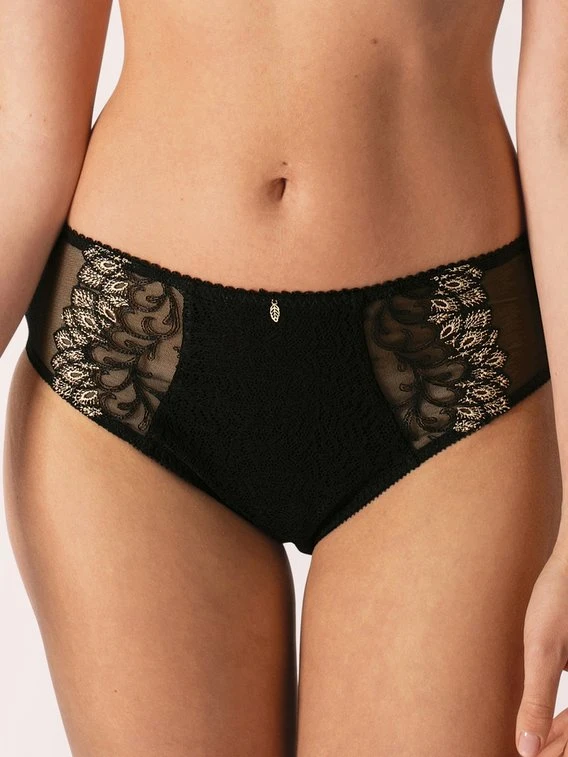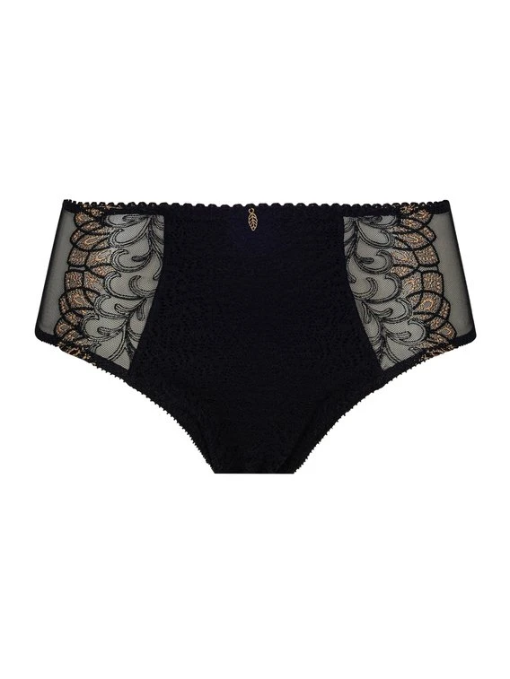 Die Panty aus der Serie „Swan“ von EMPREINTE ist nicht nur sehr komfortabel, sondern auch außergewöhnlich designt. Die Musterung erinnert an pompöse Revue-Kleider des letzten Jahrhunderts. Die Kombination aus Spitze, leicht transparentem Tüll an den Seiten und grafischen Musterungen fällt hierbei besonders ins Auge. Die Panty ist mittelhoch geschnitten und an den Abschlüssen elastisch verarbeitet, um ein uneingeschränktes Tragegefühl zu gewährleisten.
