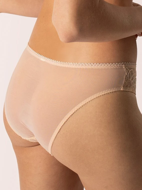 Der Slip aus der Serie „Swan“ von EMPREINTE ist nicht nur sehr komfortabel, sondern auch außergewöhnlich designt. Die Musterung erinnert an pompöse Revue-Kleider des letzten Jahrhunderts. Die Kombination aus Spitze, Tüll und grafischen Musterungen fällt hierbei besonders ins Auge. Der Slip ist mittelhoch geschnitten und an den Abschlüssen elastisch verarbeitet, um ein uneingeschränktes Tragegefühl zu gewährleisten.