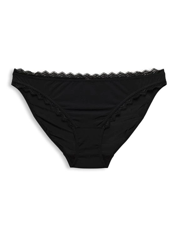 Glatt gearbeiteter Hipster-Slip aus der “Feminine Micro” Serie von ESPRIT. Der Slip besteht aus weicher, elastischer Mikrofaser mit hohem Recycling-Anteil, die für einen hohen Tragekomfort sorgt. Der feine Spitzen-Besatz an Bund und vorderem Beinausschnitt verleiht dem Höschen eine verspielte Note.