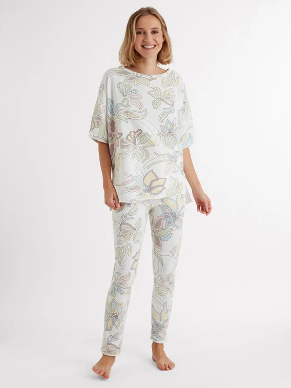 Ein florales Design zeichnet die Hose von JUVIA aus der Serie “Smillla” aus. Das Muster in hellen Pastellfarben schafft einen echten Hingucker, der dank des weichen Fleece Materials auch noch super bequem ist. Vor allem sind die zwei seitlichen Eingrifftaschen praktisch und ein Band am Bund sorgt dafür, dass die Hose nicht rutscht. Die applizierte Gesäßtasche rundet den Look ab.
