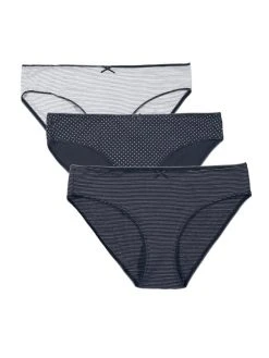 Süße Slips im Dreierpack von MARC O’POLO aus einem weichen und elastischen Materialmix. Ob Streifen- oder Punktemuste – da ist bestimmt für jede Laune der richtige Slip dabei. Schöne Geschenkidee!