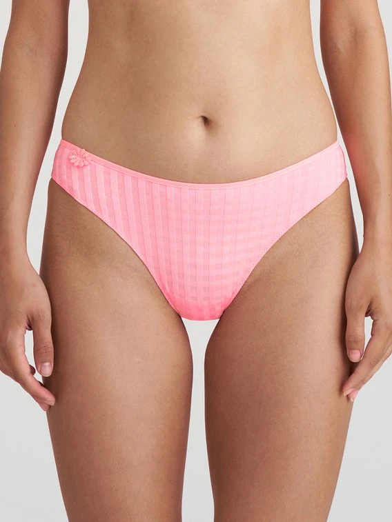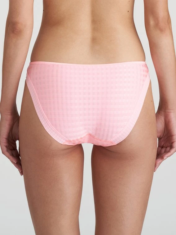 Zeitlos und modisch zeigt sich der bewährte Rio-Slip der Serie „Avero“ von MARIE JO. Vollkommen blickdicht aus grafischem Stretchmaterial und elegant mit einem gestickten Gänseblümchen verziert. Ein dünnes Fertigungsbändchen an den Pobacken sorgt dafür, dass der Slip sich unter engen Hosen nicht abzeichnet.