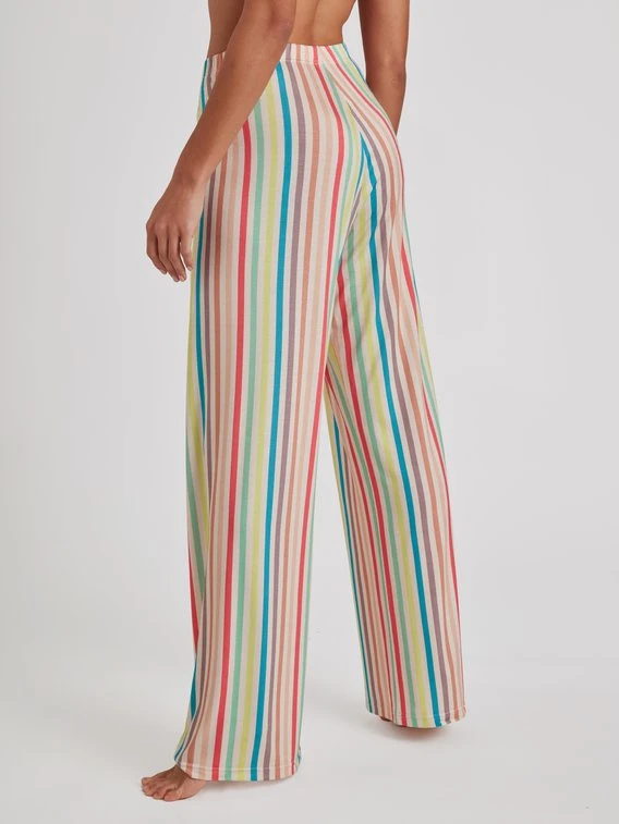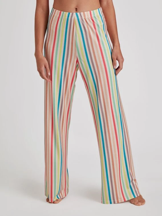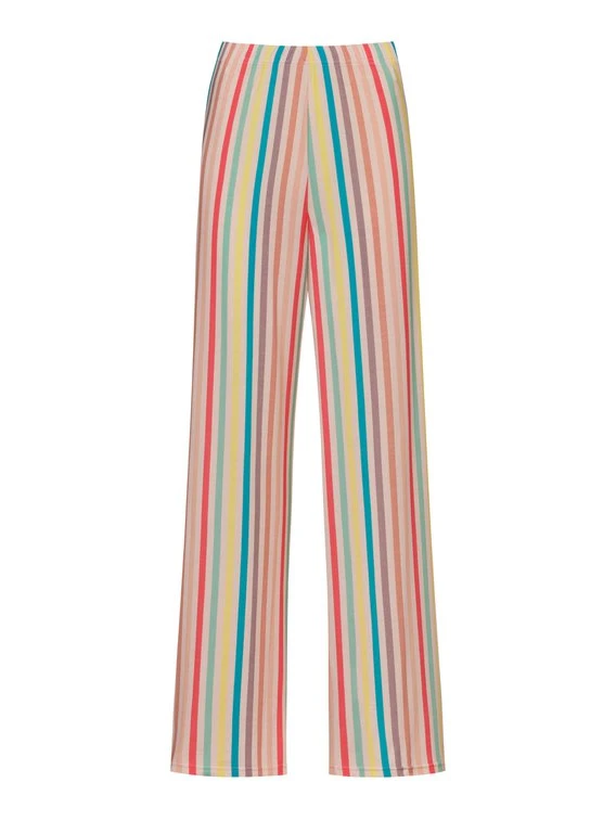 MEY präsentiert eine lange Pants aus der Serie “Fay” der Lovestory-Kollektion, die gute Laune garantiert. Die fließend weiche Qualität des Modal-Elasthan-Mix schmiegt sich zart und leicht an die Haut. Das bunte Streifendesign und der gerade Schnitt lassen die Beine unendlich lang wirken. Eine Hose, die sich ideal zum idealen Sommer-Outfit kombinieren lässt!