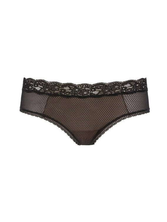 Modern, sexy und verspielt präsentiert sich die Shorty aus der “Brooklyn”-Serie von PASSIONATA. Die Hipster ist an der Vorderseite doppelt und blickdicht mit Tüll unterlegt. Die Rückseite spielt hingegen mit leichter Opazität. Der grafische Look wird mit floraler Spitze am Bund spielerisch kontrastiert.