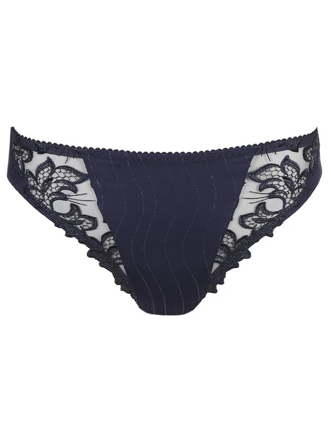 Dieser luxuriöse, blickdichte Rio-Slip aus der Serie „Deauville“ von PRIMADONNA ist aus komfortablem Mischgewebe gefertigt und mit semitransparenten Spitzeneinsätzen verziert. Die Stickerei an den Beinabschlüssen des Slips verleiht dem Design eine leichte Optik und lässt die Silhouette schlanker wirken.