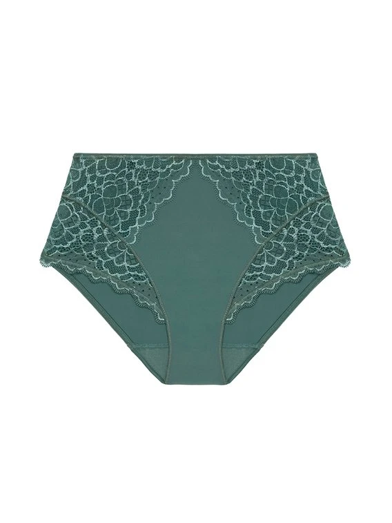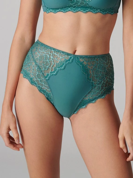 Die „Caresse“ Kollektion der französischen Dessous-Marke SIMONE PÉRÈLE besticht durch ein zeitloses und zugleich feminines, sinnliches Design und einen hohen Tragekomfort. Der Retro-Slip spielt mit transparenten und blickdichten Elementen und besteht aus weicher, elastischer Spitze sowie aus glatten, blickdichten Fasern. Der hohe Schnitt und die flachen Abschlüsse sorgen für einen bequemen Sitz und machen den Taillen-Slip zum idealen Alltagsbegleiter.