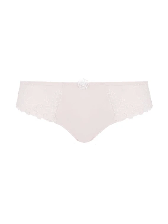 Wer es feminin und trotzdem komfortabel mag, liegt mit dem Slip der “Délice” Kollektion von SIMONE PÉRÈLE genau richtig. Der Rio-Slip sorgt dank seiner klassischen Schnittform für einen hohen Tragekomfort, während Kombination aus transparenten und blickdichten Elementen einen romantischen, sinnlichen Look bietet. Die florale Stickerei rundet das feminine Design des Höschens perfekt ab.