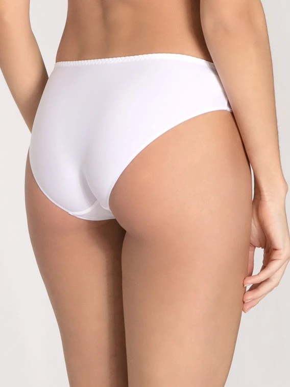 Wer es feminin und trotzdem komfortabel mag, liegt mit dem Slip der “Délice” Kollektion von SIMONE PÉRÈLE genau richtig. Der Rio-Slip sorgt dank seiner klassischen Schnittform für einen hohen Tragekomfort, während Kombination aus transparenten und blickdichten Elementen einen romantischen, sinnlichen Look bietet. Die florale Stickerei rundet das feminine Design des Höschens perfekt ab.