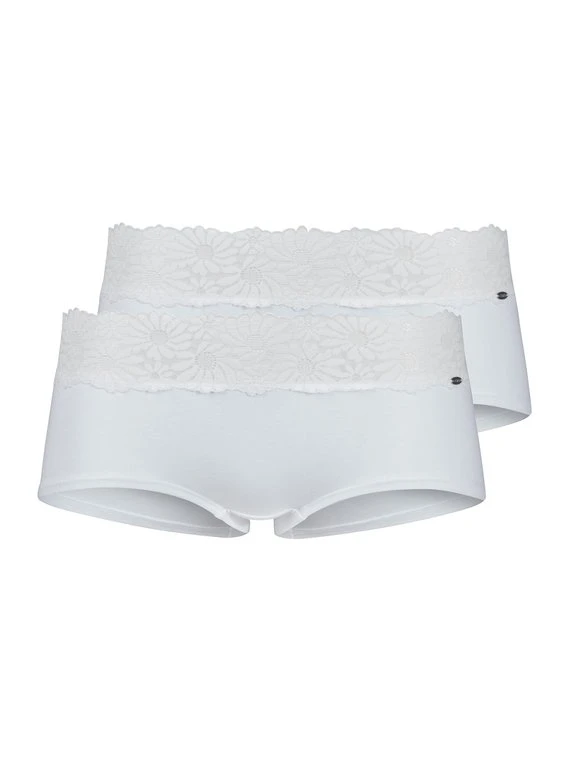 Diese höher geschnittenen Shortys aus der Serie „Every Day in CottonLace“ gibt es von SKINY, gleich im 2er-Pack. Hochwertige Baumwolle sorgt bei den Höschen für angenehmen Komfort. Der cleane Look wird durch den Bund aus semi-transparenter Spitze wirkungsvoll aufgepeppt.