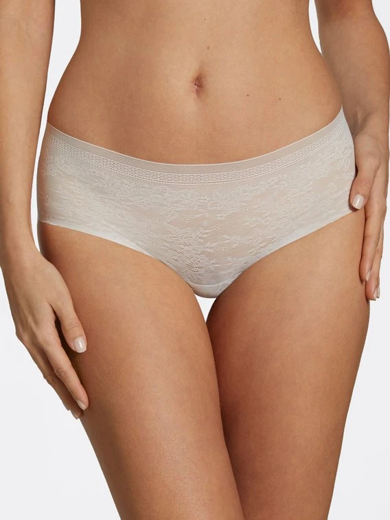 Ultraflache Spitze mit floraler Musterung kennzeichnet die Highwaist-Panty im Doppelpack aus der “ZERO Lace”-Serie von SLOGGI. Die Spitze sorgt zusammen mit der SLOGGI-typischen Wellenkante am Po für den zarten, femininen Look. Dank Dye Cut-Technologie an den Abschlüssen bleibt die Shorty selbst unter enger Oberbekleidung einfach unsichtbar.